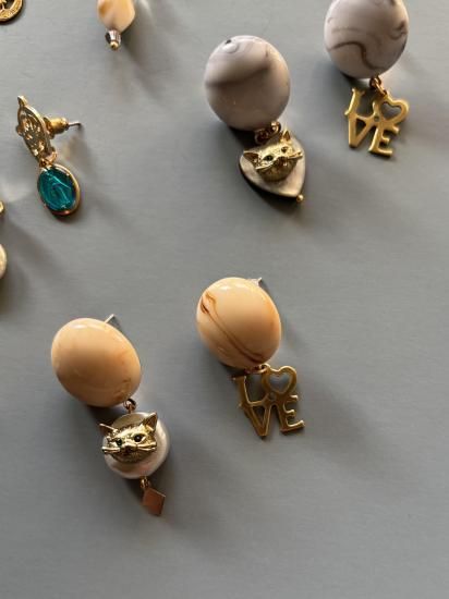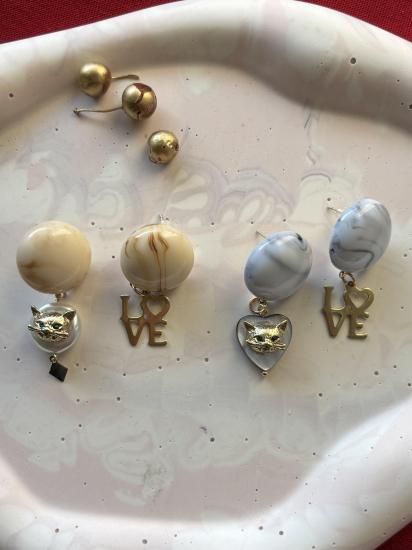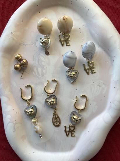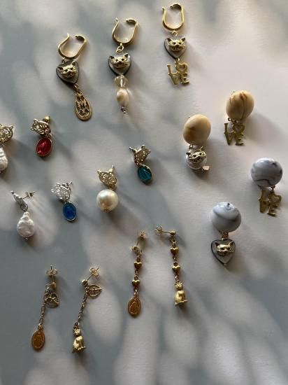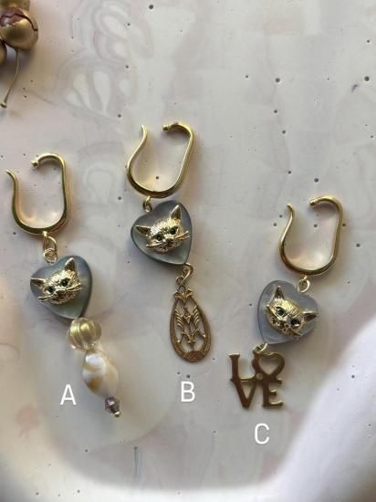 *冬季限定* 冬の心をあたためるのは、ネコの存在と小さなきらめき 愛と感謝をそっと添える I LOVE CATS シリーズ 冬のやわらかな日差しが差しこむ午後、リビングの片隅で愛猫が気持ちよさそうにひなたぼっこしている姿をぼんやりと眺める時間は宝物みたいなひとときでした。 いつも美しくて絵になる我が子。 かっこいいのに性格はとにかく面白くて小さいのに存在感抜群の子でした。 冬が来るたびに 「冬とネコって芸術!」 そう感じてしまうほどリビングに差し込む冬の光と愛猫の姿は相性が良くて いつも惚れ惚れしながら写真を撮っていました。 I LOVE CATS シリーズは そんな愛猫がくれた“穏やかで最高に幸せな記憶”を形にしたオマージュ**です。 ハートのシェルにネコの顔。 やわらかな色合いのカボション。 上品なマットゴールドのチャーム。 猫愛が止まらないストレートな愛情表現の「LOVE」 そんなデザインで思い出の温度を少しお茶目に可愛らしく閉じ込めました。 愛くるしい小さなネコのお顔が揺れるたびに日々の愛おしさや、寄り添ってくれたぬくもりがいつもそっと胸の奥で灯るように。 ネコを愛するすべての方へ。 大切な家族を胸に抱いている方へ。 ネコに救われたあのあたたかさを知る方へ。 この冬、耳元に揺れる小さなネコが あなたの心にもそっと穏やかな光を届けてくれますように。 そしてこれからも世界中のネコたちが穏やかに平和に過ごせますように。 愛猫への深い感謝を込めてお届けする 冬限定の I LOVE CATS シリーズです。 素材) イヤーカフ本体:真鍮ニッケルフリー ピアスポスト:アレルギー非対応 ハートパーツ:シェル サイズ) イヤーカフ :全長 約5.5〜6.5cm ピアス:全長 約4.4cm |